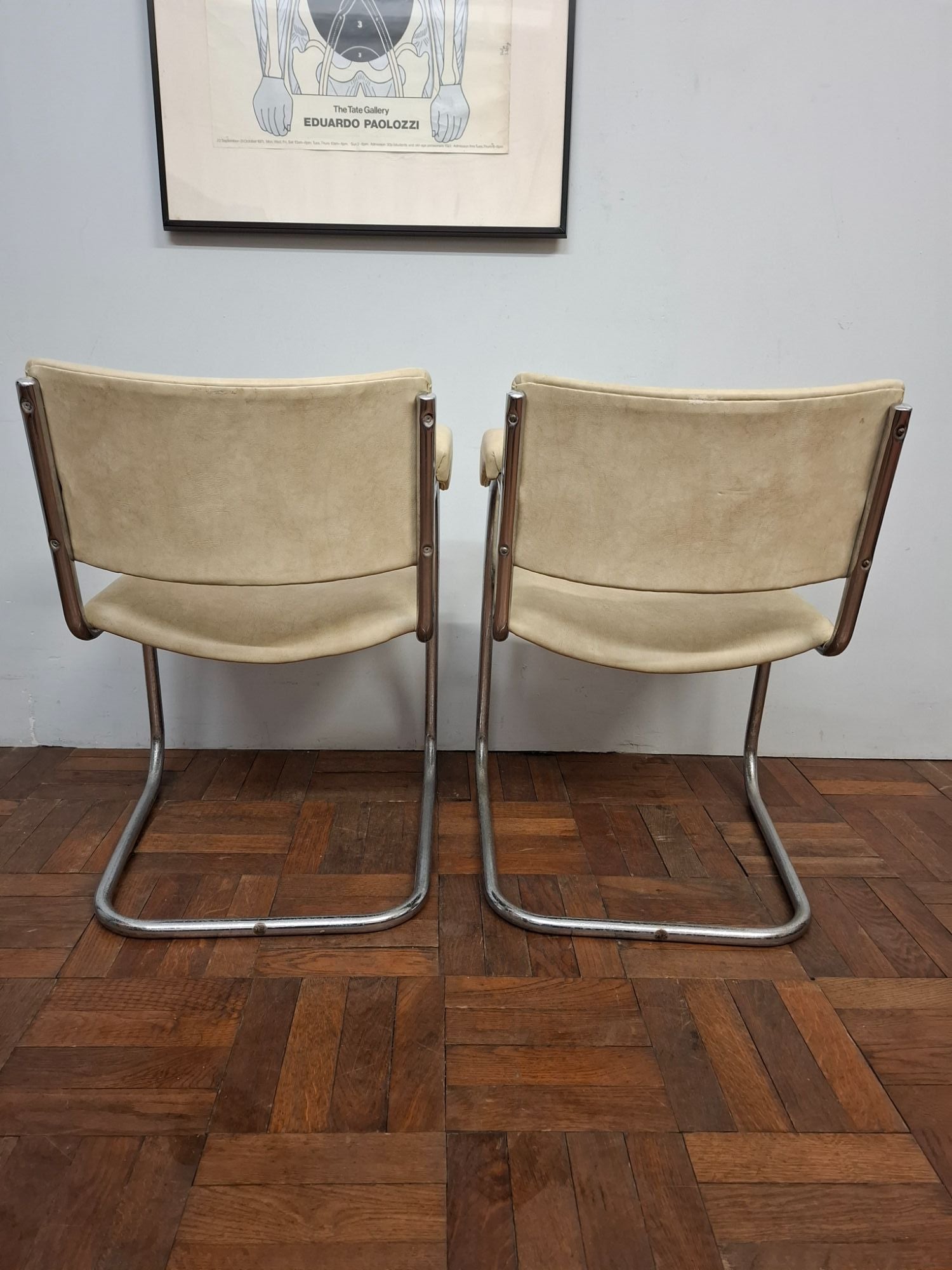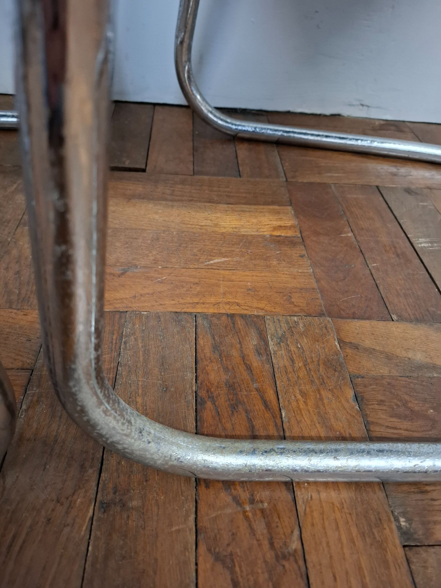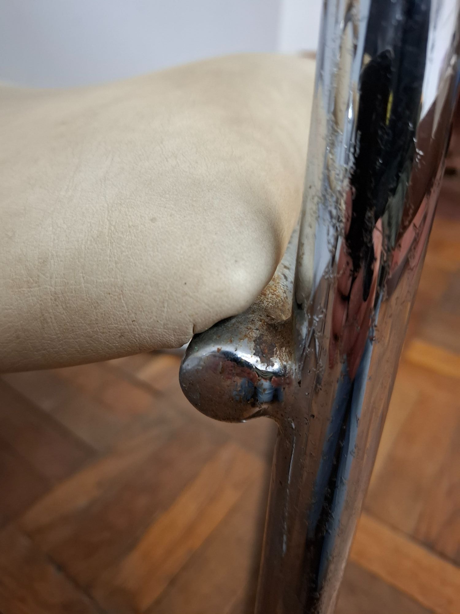 The cantilevered chairs are structurally sound , with some wear to the chrome plating and few marks to upholstery.