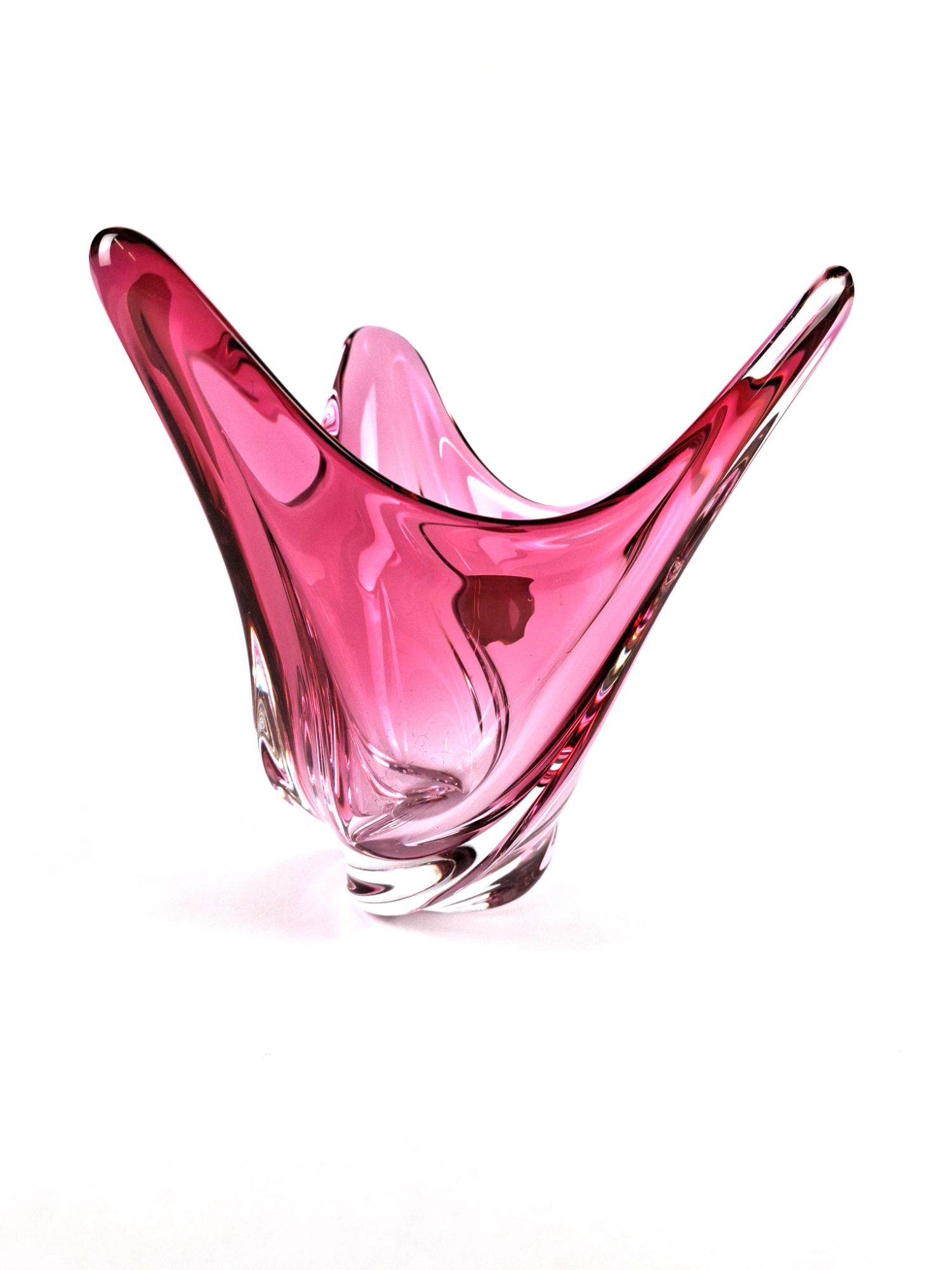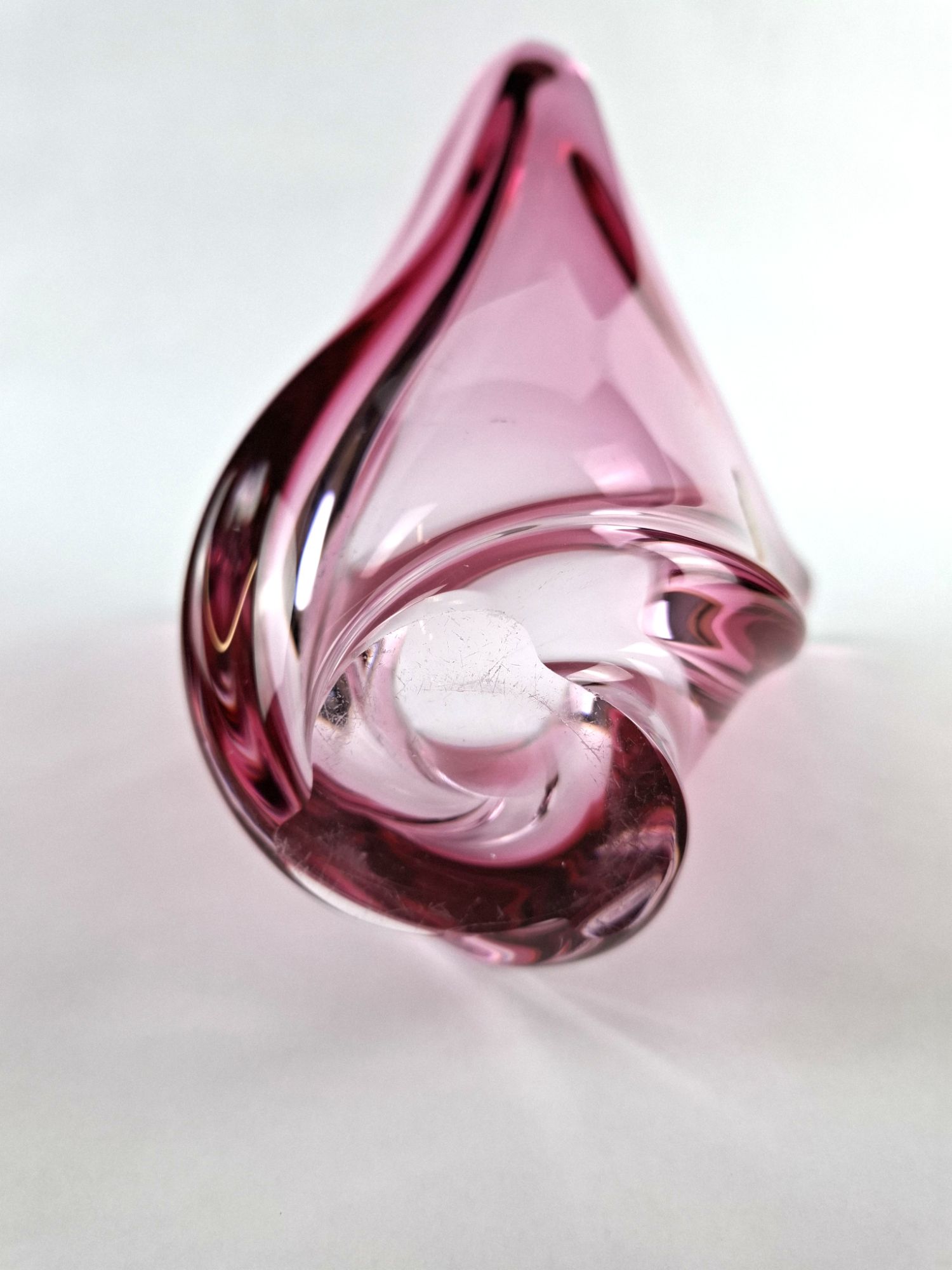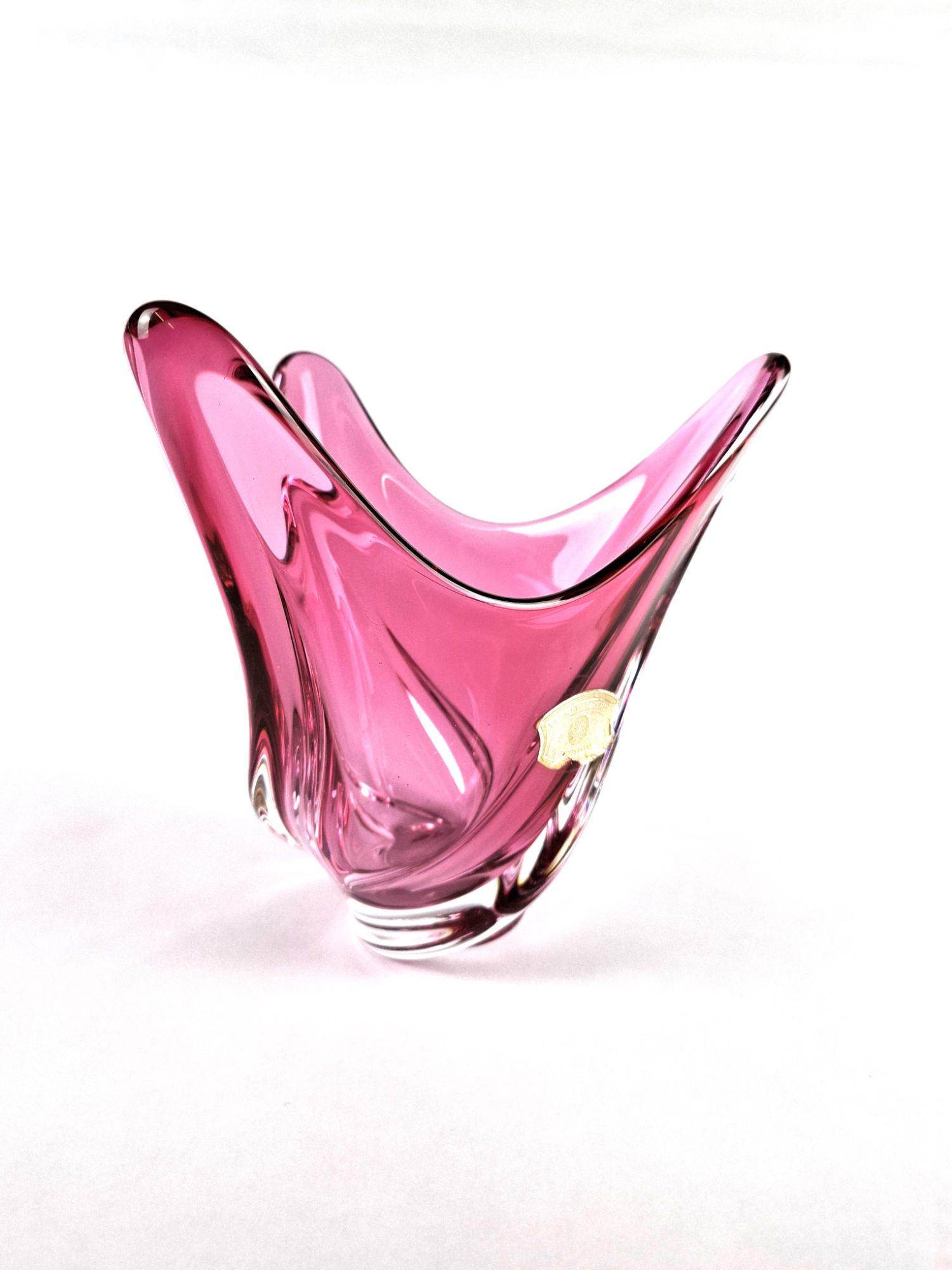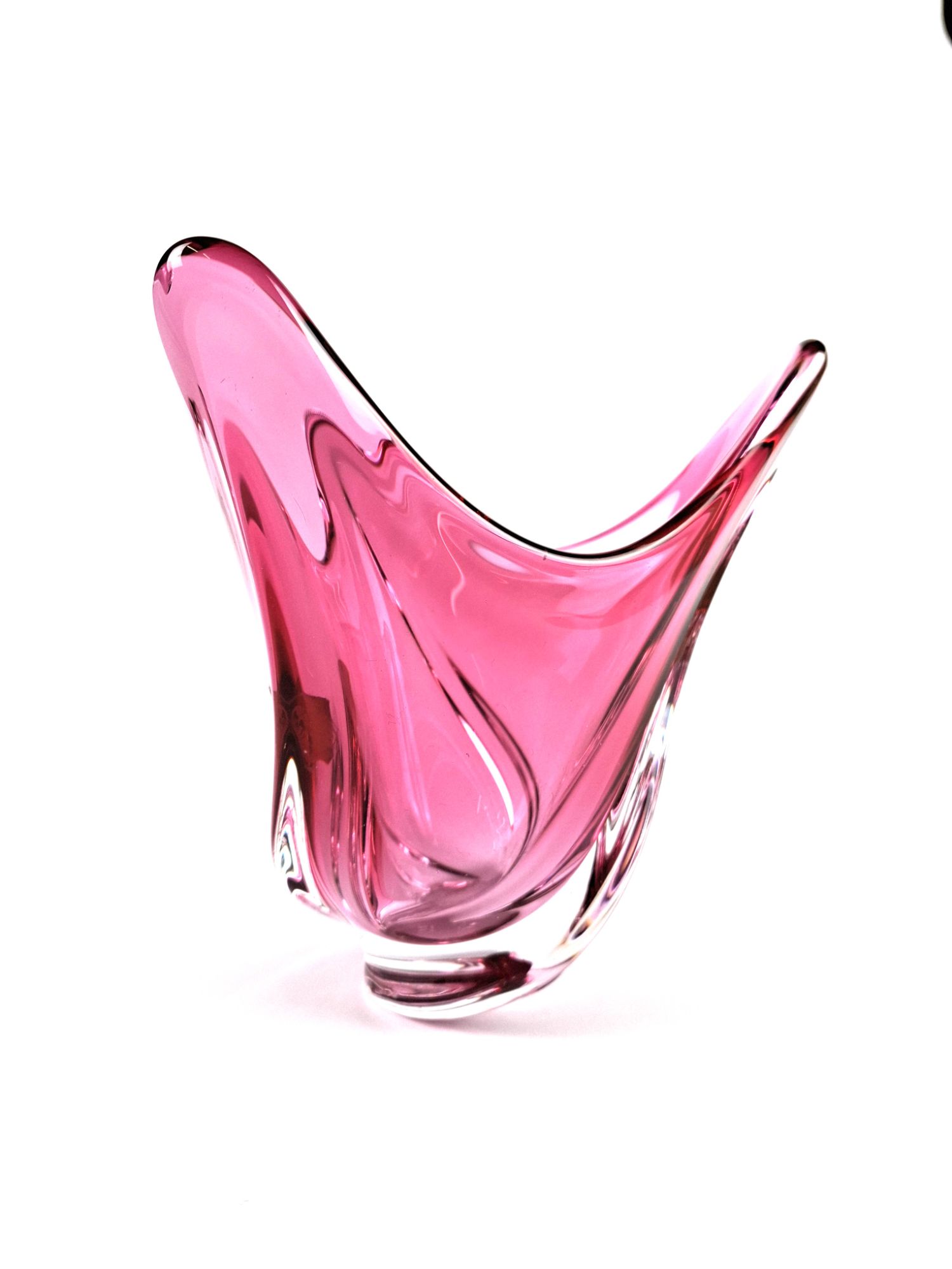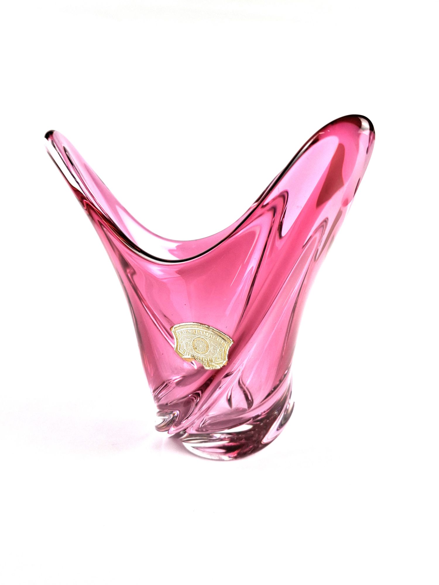 Rose pink crystal glass vase by the Belgian firm of Val St. Lambert circa 1950s.