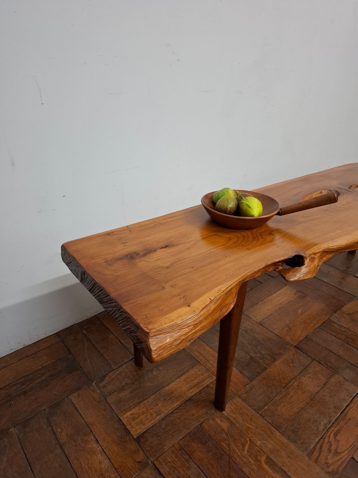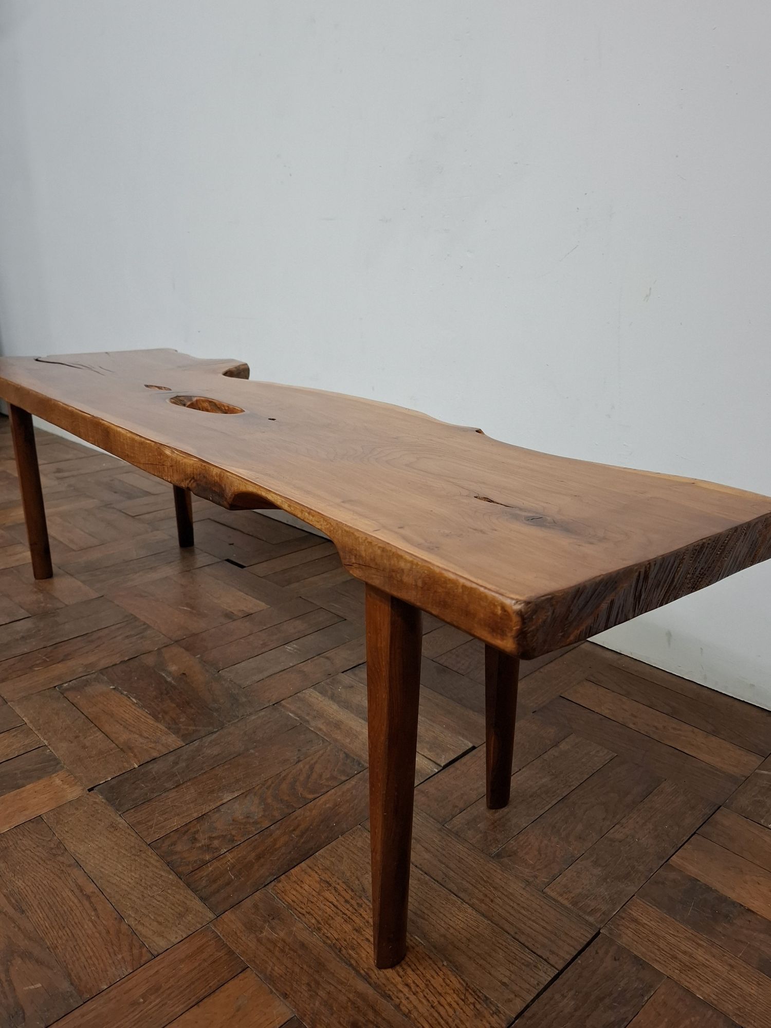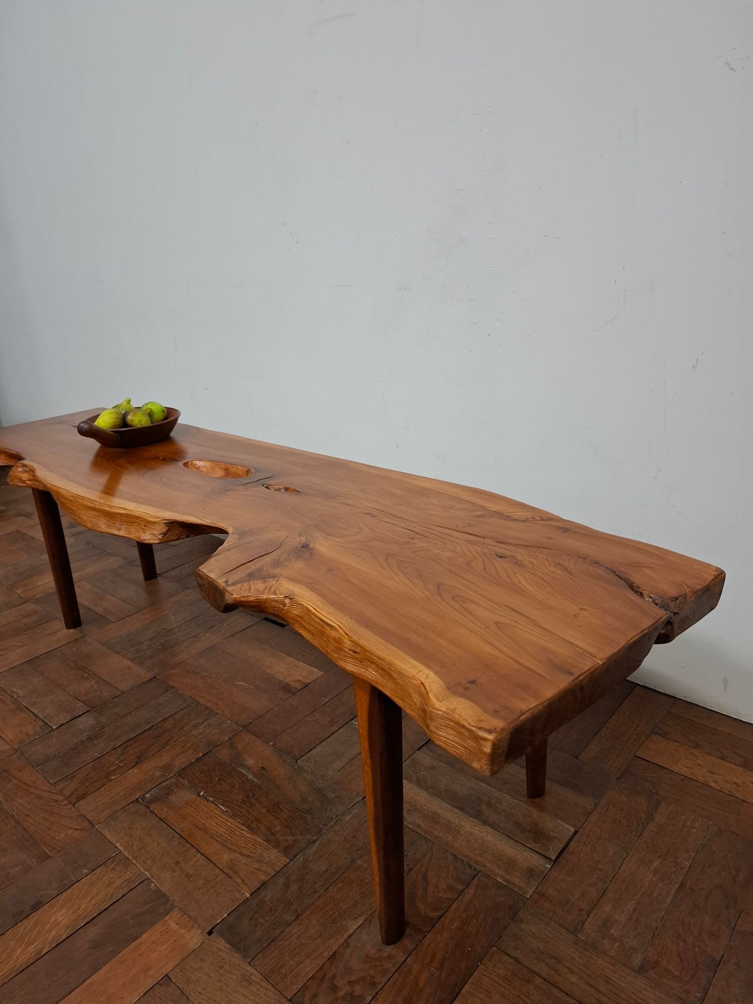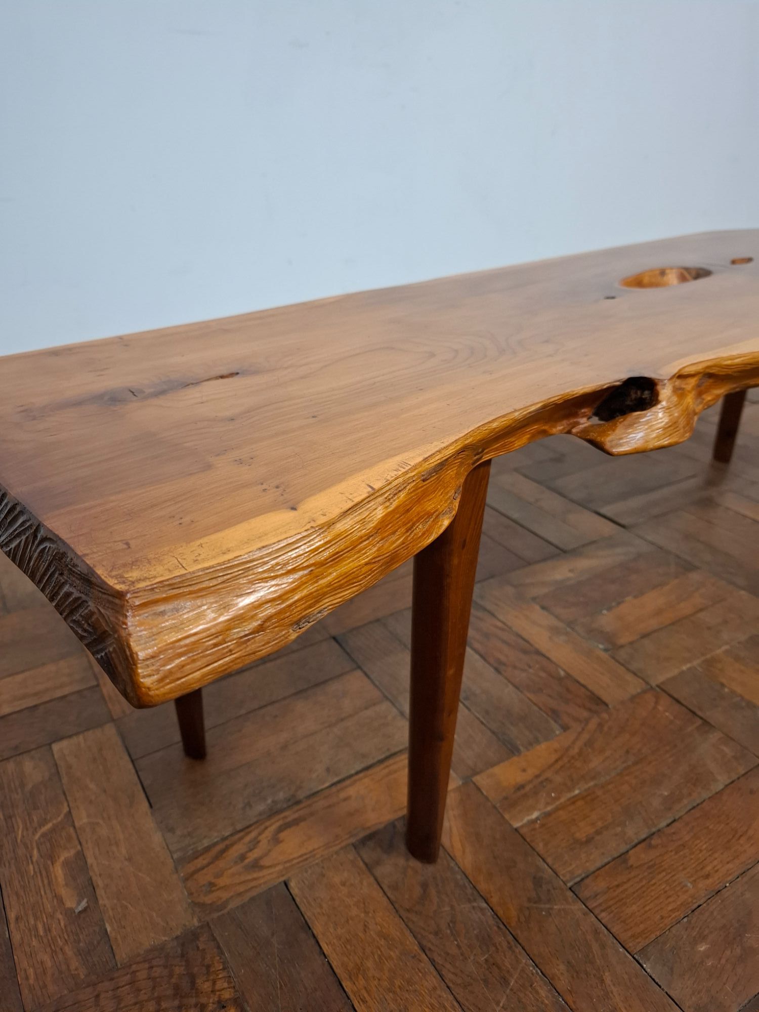 A beautiful looking solid yew table made by the respected firm Reynolds of Ludlow, Shropshire, England. In business since 1946, exhibited at the Festival of Britain in 1951, and supplied illustrious retailers such as Heals, but unfortunately closed in 1980 due to market forces.